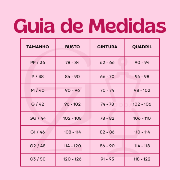 Se você estiver entre dois tamanhos, recomendamos optar pelo maior, garantindo mais conforto e melhor caimento.
